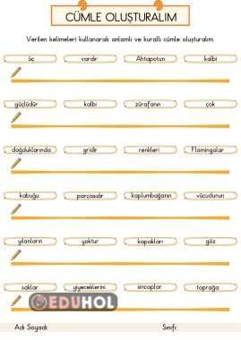1.Sınıf Türkçe Dersi Anlamlı ve Kurallı Cümle Oluşturma Çalışması