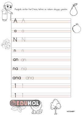 Aşağıda verilen harf, hece, kelime ve rakamı okuyup, yazalım.