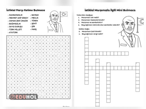 İstiklal Marşı ile ilgili 2 farklı tarzda bulmaca etkinliği