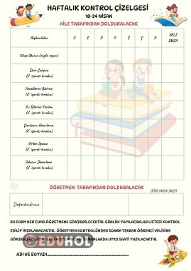 Haftalık Öğrenci Takip Çizelgesi (18-24 Nisan)