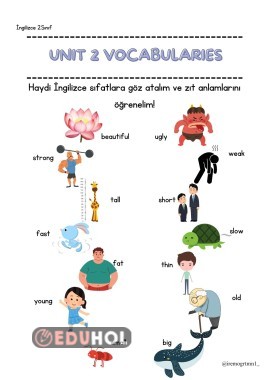 İngilizce 2. Ünite Kelimeler - deftere yapıştırma