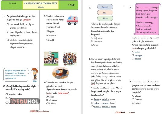 3. Sınıf Hayat Bilgisi Meslekler Konu tarama testi