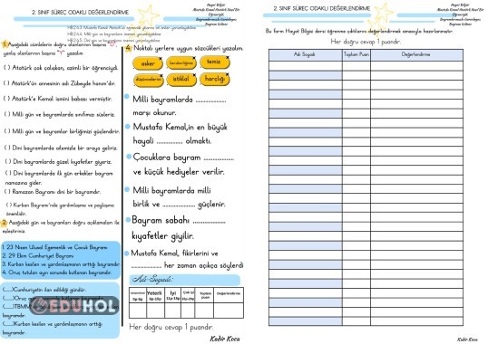 2.sınıf hayat bilgisi süreç odaklı değerlendirme 23-24-25-26