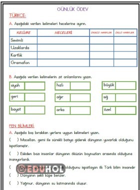 Türkçe, Fen Bilimleri ve Matematik derslerinden hazırlanmıştır.