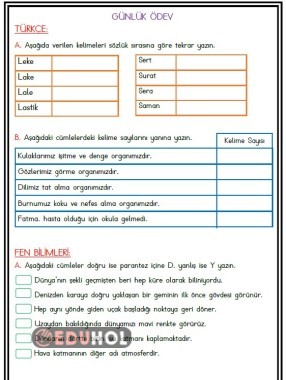 Türkçe, Hayat Bilgisi ve Matematik derslerinden hazırlanmıştır.