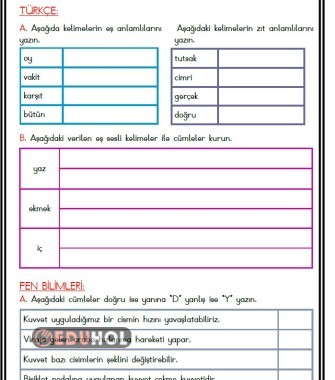 Türkçe, Fen Bilimleri ve Matematik derslerinden hazırlanmıştır.