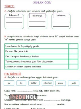 Türkçe, Fen Bilimleri ve Matematik derslerinden hazırlanmıştır.