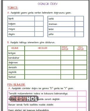 Türkçe, Fen Bilimleri ve Matematik derslerinden hazırlanmıştır.