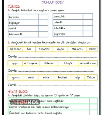Türkçe, Hayat Bilgisi ve Matematik derslerinden hazırlanıştır.