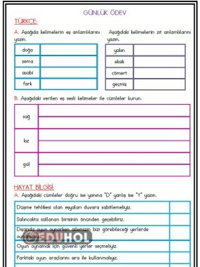 Türkçe, Hayat Bilgisi ve Matematik derslerinden hazırlanmıştır.