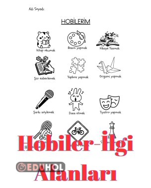 Öğrenciler görselleri inceleyerek sevdikleri hobilerin altını çizer, boyar ya da işaretler. İsterlerse en çok sev ...