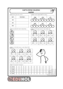 HAFTA SONU ÇALIŞMA KAĞIDI. MATEMATİK DOĞAL SAYILAR , BASAMAK ADI DEĞERİ , YUVARLAMA, RİTMİK SAYMA