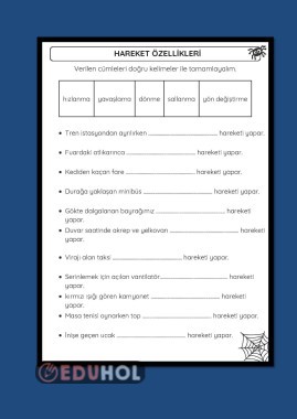 HAREKETİN ÖZELLİKLERİ ÇALIŞMA KAĞIDI
