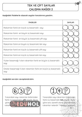 TEK VE ÇİFT SAYILAR ÇALIŞMA KAĞIDI 2
