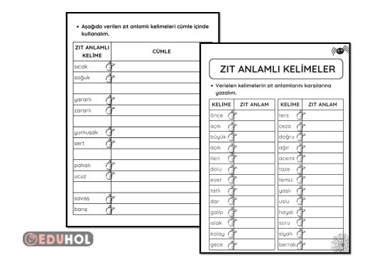 ZIT ANLAMLI KELİMELER ÇALIŞMA KAĞIDI