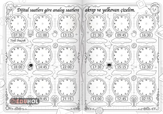 Analog Saat Çizimi Boyamalı Şablon