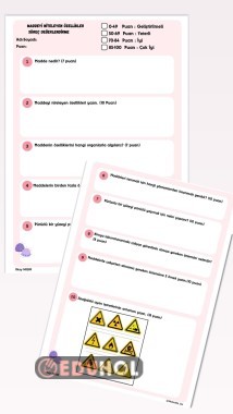 Maddeyi Niteleyen Özellikler Bölümünden Değerlerlendirme Sorularıdır.