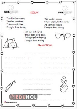 KIZILAY HAFTASI İÇİN HAZIRLADIĞIM KIZILAY ŞİİRİ GÜZEL YAZI ÇALIŞMASI (BOYAMALI)