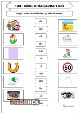 Görsel - Kelime Eşleştirme Bulmacası (L Sesi). İsimleri verilen kelimeleri görselleri ile eştirme etkinliği...