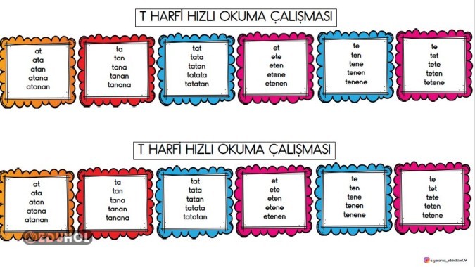 T sesi için hazırladığım yukardan aşağı genişletilmiş hızlı okuma çalışması... (Deftere yapıştırarak da kullanabilirsiniz.)