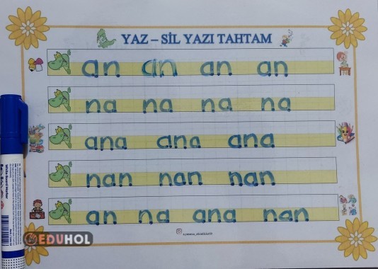 Okuma yazma sürecinde harf, hece, kelime, cümle yazarken çocukların keyifle kullanabilecekleri yaz - sil yazı tahtası.. Çıktı alıp pvc kaplayarak veya poşet dosya içerisine koyup kullanabilirsiniz.