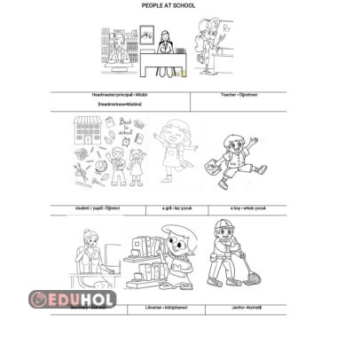 Alt sınıflar (2/3/4) içinde uygundur. Boyama ve kes-yapıştır etkinliği olarak da kullanılabilir. Etiketler: school people teacher Student