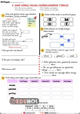 TÜRKÇE SÜREÇ ODAKLI DEĞERLENDİRME ŞİİR BİLGİSİ + HARF BİLGİSİ + OKUDUĞUNU ANLAMA
