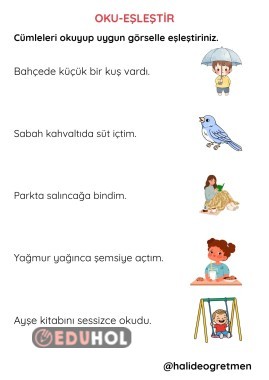 Cümleleri okuyup uygun görselle eşleştirelim.