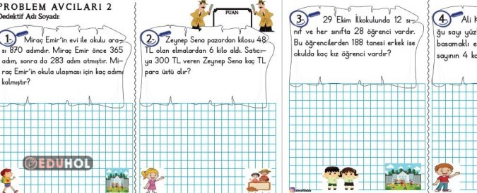 PROBLEM AVCILARI İLE ÖĞRENCİLER BİR DEDEKTİF GİBİ PROBLEMLERİ ÇÖZMEYE ÇALIŞACAKLAR. TOPLAMDA 4 PROBLEM VAR. HER PROBLEM 1 PUAN. BURAYA YÜKLEDİĞİM GÖREV PUANI TABLOLARIYLA AYIN BAŞ DEDEKTİFLERİNİ EN İYİ DEDEKTİFLERİNİ BULAC ...