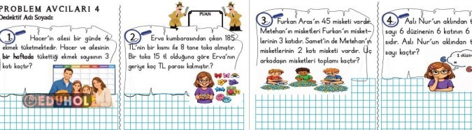 PROBLEM AVCILARI İLE ÖĞRENCİLER BİR DEDEKTİF GİBİ PROBLEMLERİ ÇÖZMEYE ÇALIŞACAKLAR. TOPLAMDA 4 PROBLEM VAR. HER PROBLEM 1 PUAN. BURAYA YÜKLEDİĞİM GÖREV PUANI TABLOLARIYLA AYIN BAŞ DEDEKTİFLERİNİ EN İYİ DEDEKTİFLERİNİ BULAC ...