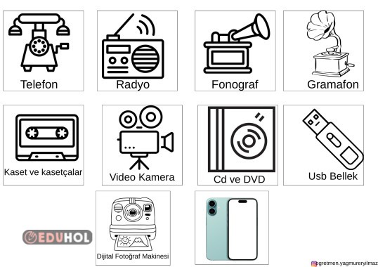 Geçmişten günümüze ses teknolojileri kesip yapıştırma. İnteraktif defter etkinliklerinde rahatça kullanabilirsiniz.