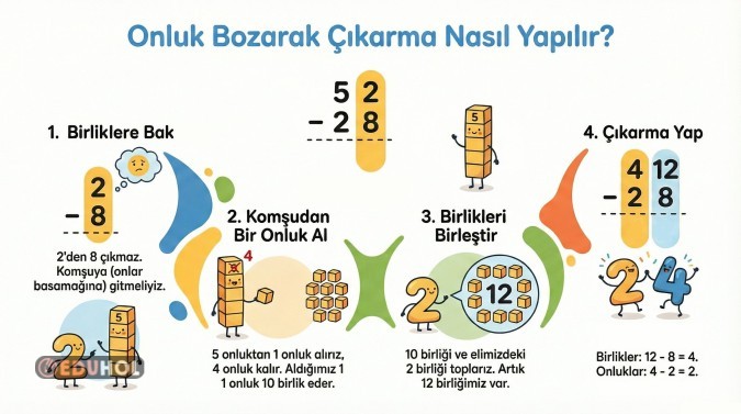 "Onluk Bozarak Çıkarma İşlemi" konusunun infografiğidir. Keyifle kullanmanız dileğiyle...