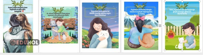 Canvadaki hazır şablonlar üzerine hayvanları koruma günüyle ilgili söylenmiş sözler eklenmiştir.