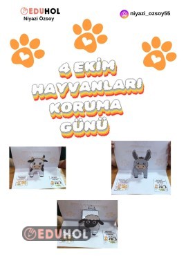 Bu etkinlik dosyası, 4 Ekim Hayvanları Koruma Günü kapsamında öğrencilerde hayvan sevgisi, doğaya duyarlılık ve sorumluluk bilincini geliştirmek amacıyla hazırlanmıştır.