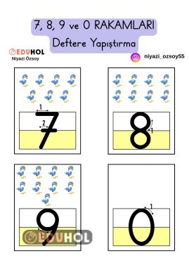 7,8,9 ve 0 Rakamları Deftere Yapıştırma