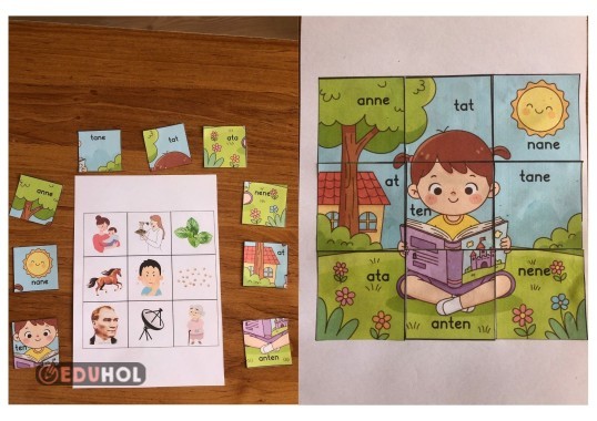 t sesinden oluşan kelimelerle ilgili yapboz çalışması.