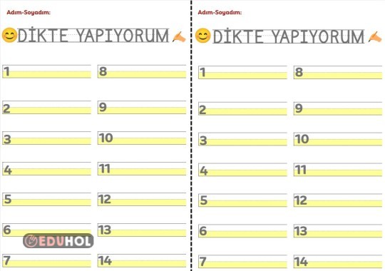 1.SINIF DİKTE ÇALIŞMA SAYFASI
