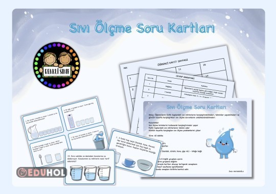 Sıvı Ölçme Soru Kartları, öğrencilerinizin farklı kaplardaki sıvı miktarlarını karşılaştırabilmeleri, tahminler yapabilmeleri ve günlük hayatta karşılaştıkları sıvı ölçme durumlarını anlamlandırabilmeleri için tasarlanmıştır. Bu kaynağı 2-3. sınıf öğ ...