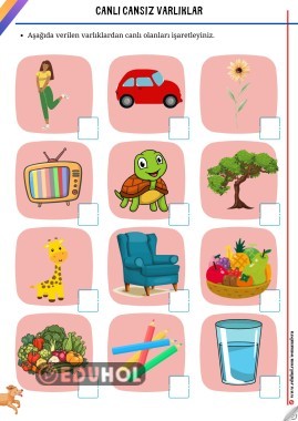 Bu tarz bilgi yarışı, etkinlik ve çalışma kağıtlarından haberdar olmak için takip etmeyi unutmayın. Etiketler: canlı cansız varlıklar etkinliği