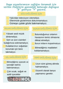 Duyu Organlarının Sağlığı Çalışma Kağıdı