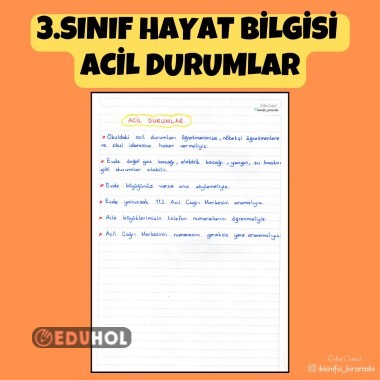 3.SINIF HAYAT BİLGİSİ ACİL DURUMLAR DEFTER NOTU