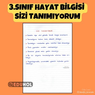 3.SINIF HAYAT BİLGİSİ SİZİ TANIMIYORUM DEFTER NOTU
