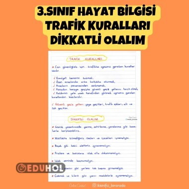 3.SINIF HAYAT BİLGİSİ TRAFİK KURALLARI- DİKKATLİ OLALIM DEFTER NOTU