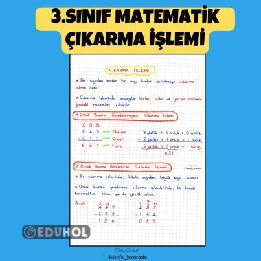 3.SINIF MATEMATİK ÇIKARMA İŞLEMİ DEFTER NOTU