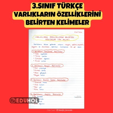 3.SINIF TÜRKÇE VARLIKLARIN ÖZELLİKLERİNİ BELİRTEN KELİMELER