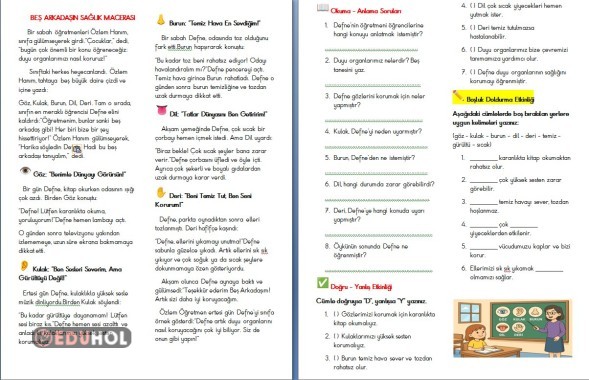 3.sınıf Fen Bilimleri duyu organlarının sağlığını koruma okuma anlama metni.