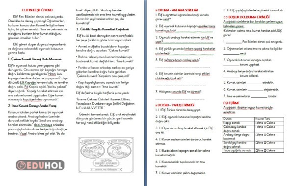 3.sınıf Fen Bilimleri itme ve çekme kuvveti okuma anlama metni