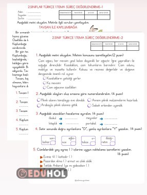 2.Sınıf Türkçe 1.Tema Süreç Değerlendirme Çalışma Sayfaları ve Değerlendirme Formları
