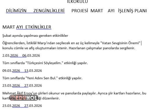 DİLİMİZİN ZENGİNLİKLERİ MART AYI PLANI