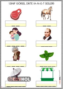 1.sınıf görsel dikte etkinliği. Çocuklar daha kolay yapması için harf sayısı kadar çizgi çizdim.